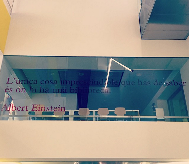 Rebem aquesta fotografia de la nova biblioteca El Clot-Josep Benet, ubicada a l'interior del Museu del Disseny de Barcelona (la "grapadora "de les Glòries). Es va inaugurar el mes passat i és la 39na biblioteca pública de la xarxa de biblioteques de Barcelona.